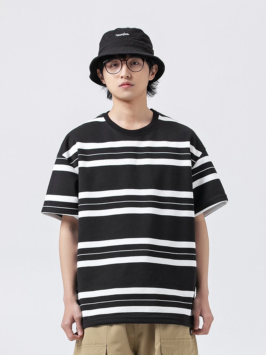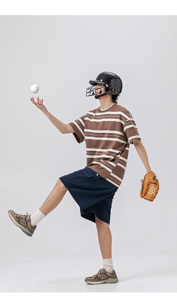 メンズ Tシャツ 2023新作 トッブス コントラスト色 半袖 スポーツ ファッション ストライプ