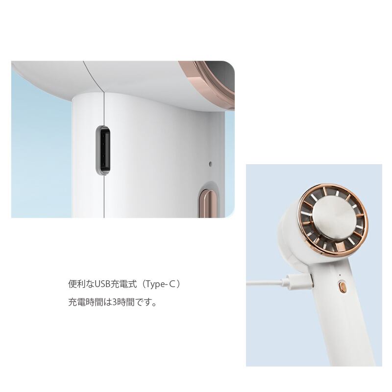 ハンディファン 軽量 フックつき スタンド 携帯扇風機 ミニ扇風機 ライト USB充電 卓上 小型 3段階風量