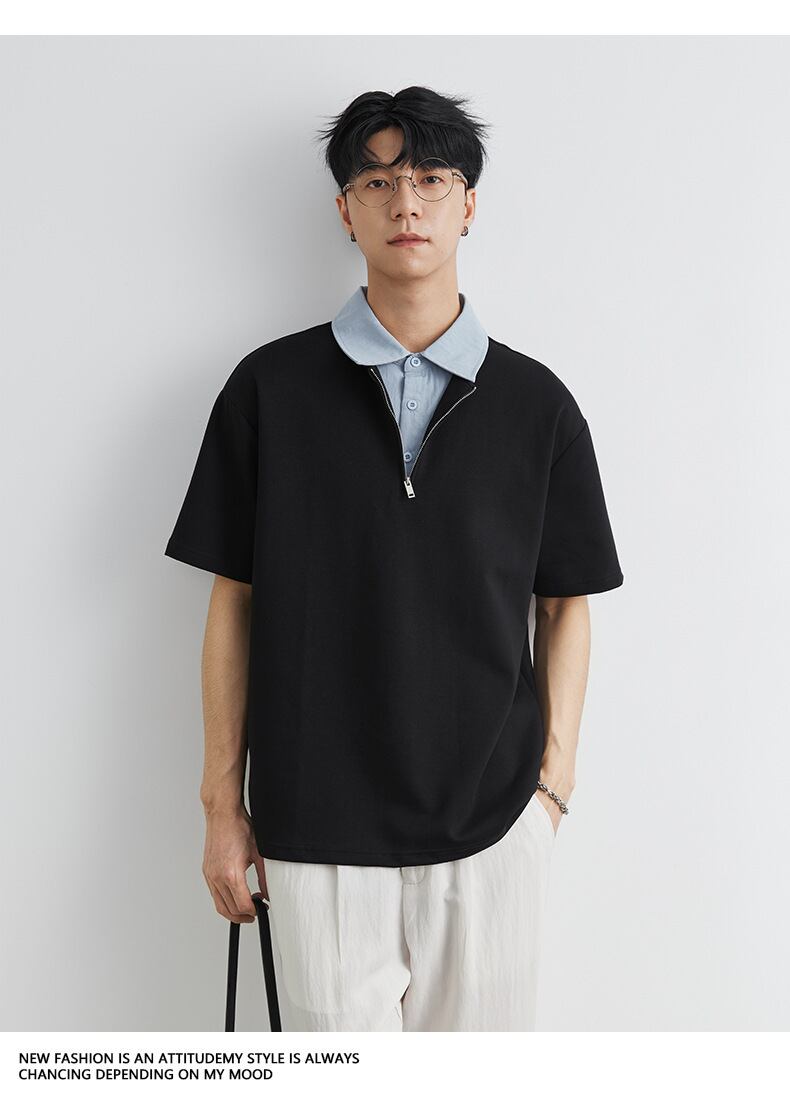 ゆるい トップス 半袖 韓国風 カジュアル メンズ 男 2025春夏新作 ポロシャツ レトロ