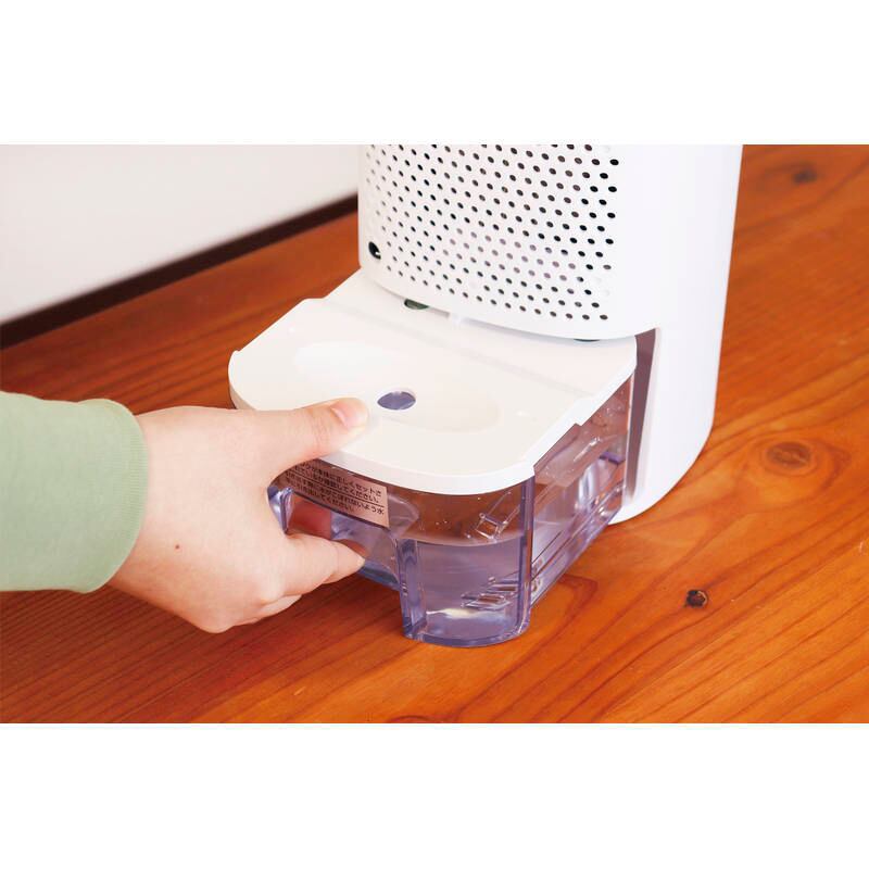コンパクトサイズなので省スペースでもお使いいただけます!・運転時は緑LED、タンクが満水になると赤LEDが点滅してお知らせ・タンクは水をこぼしにくい引き出し式で除湿効果が見える半透明。・満水になると自動で運転停止します。・除湿能力/約200mL/24時間・タンク:0.8L