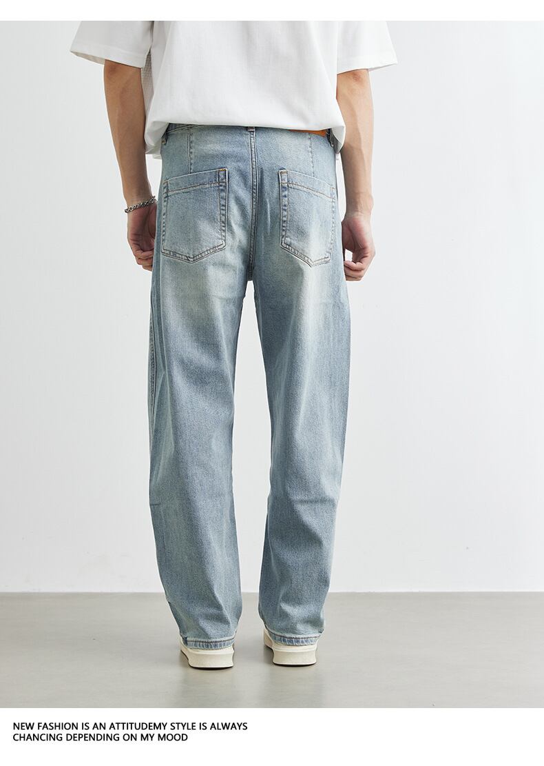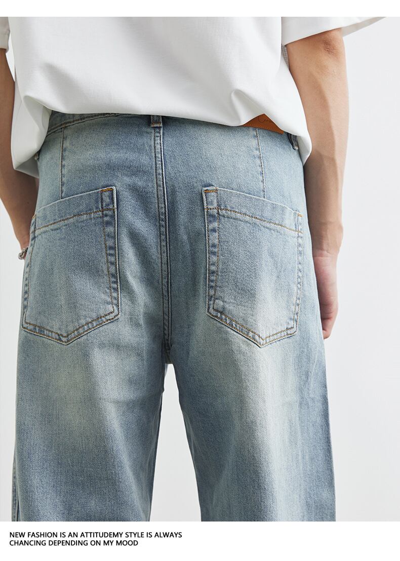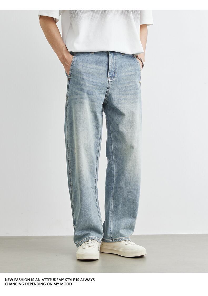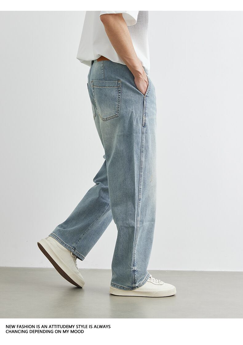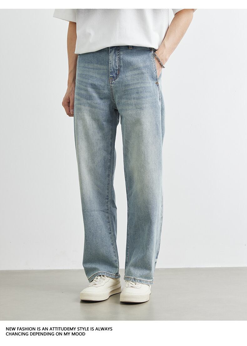 デニム ジーンズ 韓国風 ワイド ボトムス メンズ 2025春夏新作 レトロ ファッション カジュアル
