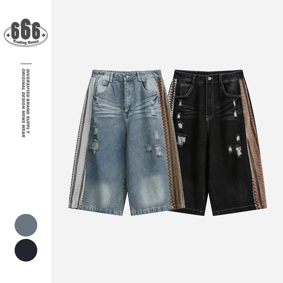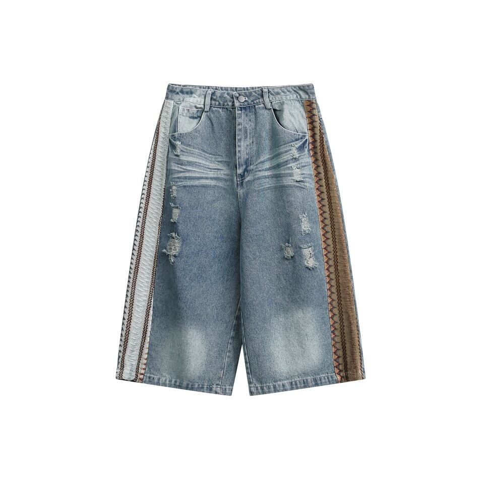 デニム ジーンズ ワイド 2025春夏新作 ボトムス ハーフパンツ メンズ カジュアル ダメージ