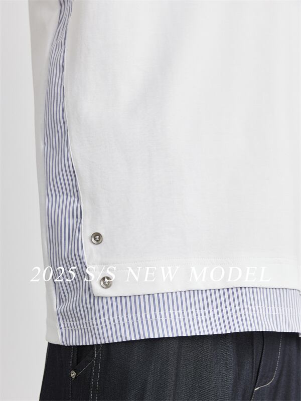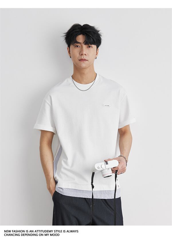 仮二件 トップス カジュアル 半袖 レトロ 韓国風 Tシャツ メンズ 男 2025春夏新作