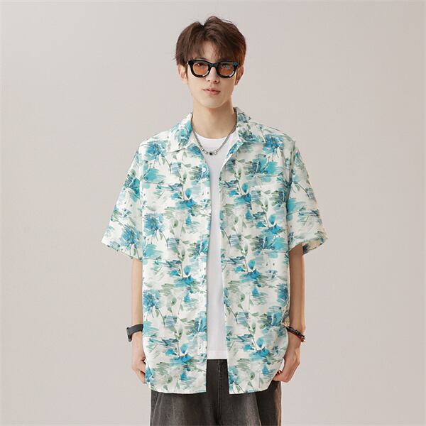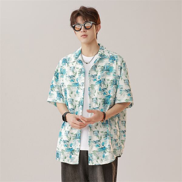 カラフルアロハシャツ 涼感 メンズ半袖 2025春夏新作 トッブス サマーバンビーナス