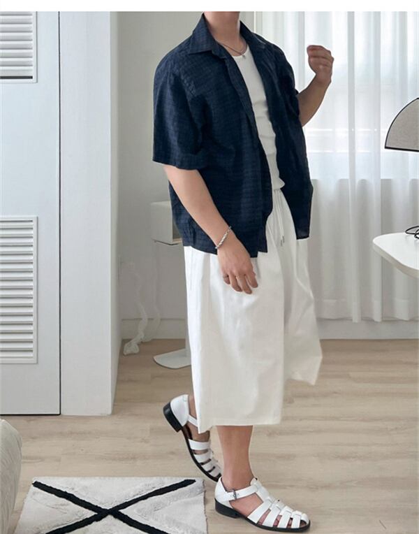 韓国風 ズボン 2025春夏新作 7分 ボトムス パンツ ショートパンツ メンズ ワイド