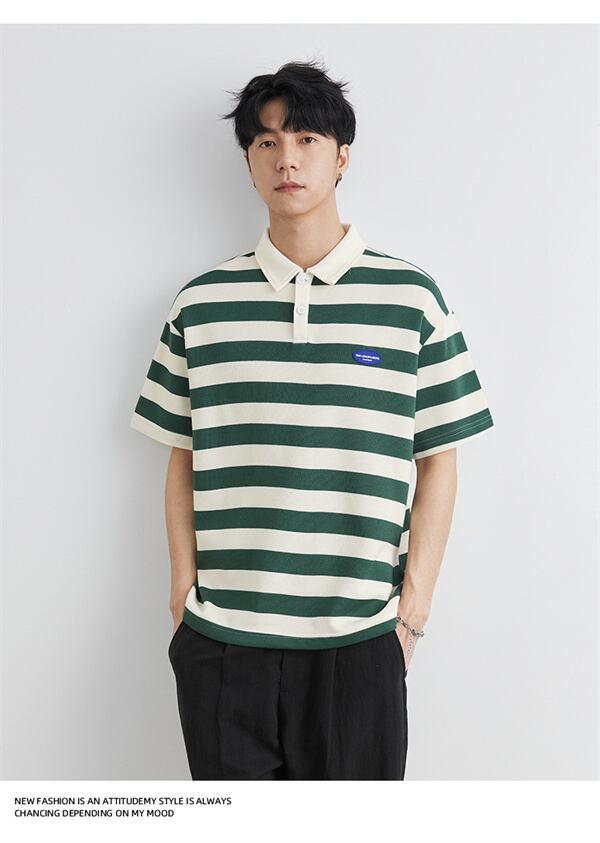 半袖 韓国風 メンズ 男 2025春夏新作トップス カジュアル ポロシャツ ストライプ