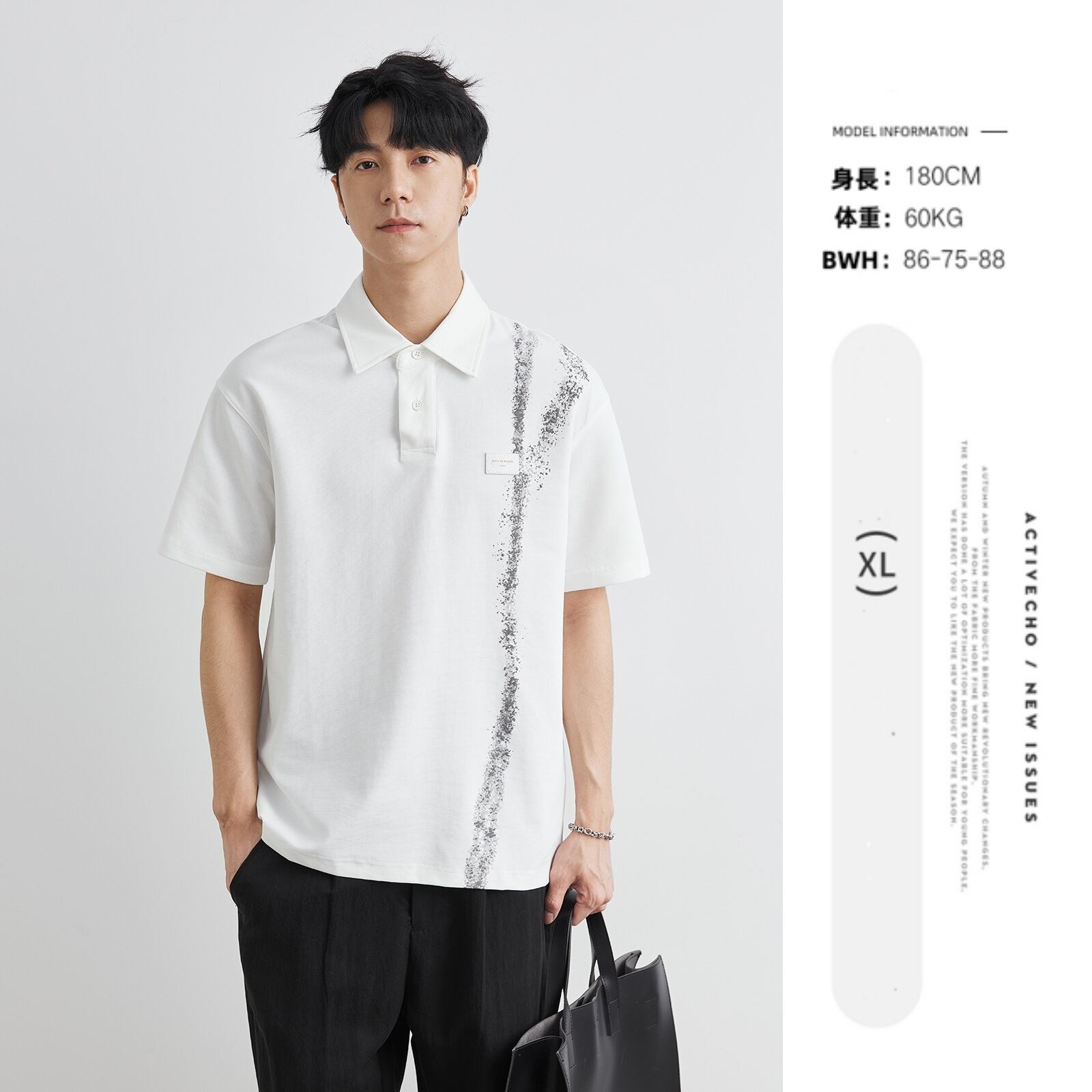 トップス カジュアル 半袖 レトロ 中国風 ポロシャツ メンズ 男 2025春夏新作 プリント